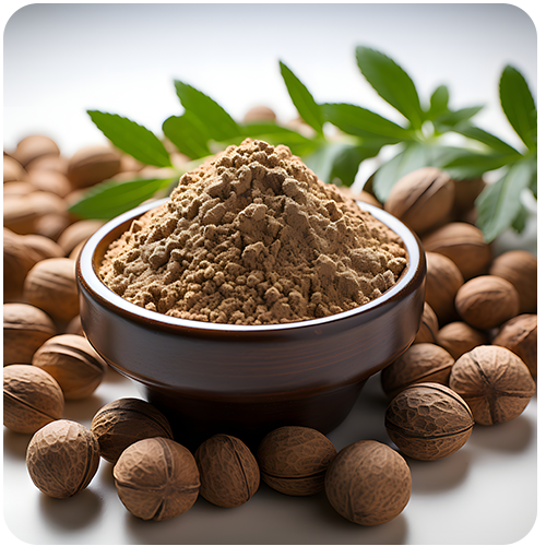 Nutmeg is used to season dishes and is available to buy as a ground spice or in its whole form.